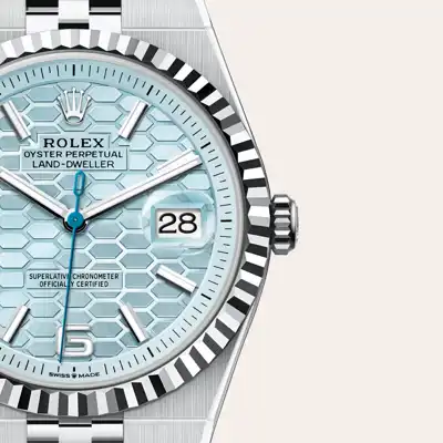 The Rolex fluted bezel is a mark of distinction. Originally, the fluting of the Oyster bezel had a functional purpose: it served to screw the bezel onto the case helping to ensure the waterproofness of the watch. It was therefore identical to the fluting on the case back, which was also screwed onto the case for waterproofness, using specific Rolex tools. Over time, the fluting became an aesthetic element, a genuine Rolex signature feature. Today the fluted bezel is a mark of distinction, in platinum on this Land-Dweller 40.