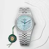 Gem-setters, like sculptors, finely carve the precious metal to hand-shape the seat in which each gemstone will be perfectly lodged. With the art and craft of a jeweller, the stone is placed and meticulously aligned with the others, then firmly secured in its gold or platinum setting. Besides the intrinsic quality of the stones, several other criteria contribute to the beauty of Rolex gem-setting: the precise alignment of the height of the gems, their orientation and position, the regularity, strength and proportions of the setting as well as the intricate finishing of the metalwork. A sparkling symphony to enhance the watch and enchant the wearer.