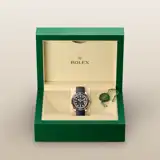 The five-year guarantee which applies to all Rolex models is coupled with the green seal, a symbol of its status as a Superlative Chronometer. This exclusive designation attests that the watch has successfully undergone a series of specific final controls by Rolex in its own laboratories according to its own criteria, in addition to the official COSC certification of its movement.