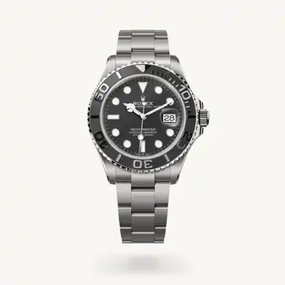 The Yacht-Master’s bidirectional rotatable 60-minute graduated bezel is made entirely from precious metals or fitted with a Cerachrom insert in high-tech ceramic. The raised polished numerals and graduations stand out clearly against a matt, sand-blasted background. This functional bezel – which allows the wearer to calculate, for example, the sailing time between two buoys – is also a key component in the model’s distinctive visual identity.