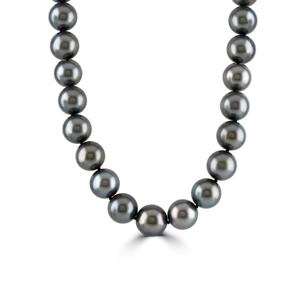 Discover the pinnacle of luxury with our exquisite strand of graduated Tahitian pearls, elegantly secured with an 18ct white gold ball clasp. This magnificent necklace features 37 meticulously selected Tahitian pearls, renowned for their captivating lustre and deep, rich tones. Graduating in size from 10.0mm to 12.5mm, each pearl has been carefully chosen to create a harmonious and visually stunning progression, culminating in a piece of unmatched elegance and sophistication. The premium 18ct white gold clasp not only ensures a secure fit but also adds a touch of refinement to this breath taking necklace. Perfect for special occasions or adding a touch of glamour to your everyday wear, this strand of Tahitian pearls is a true testament to timeless beauty and luxury. Elevate your jewellery collection with this unparalleled piece, a symbol of elegance and opulence.