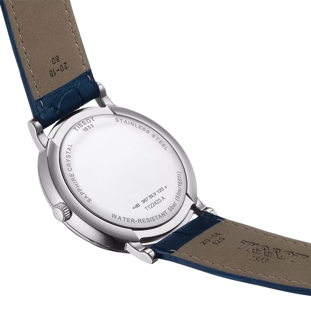 The Tissot Carson will be the perfect accessory to wear on any occasion. Its classic style never goes out of date: with its graceful dial design and elongated fine hands, you will love wearing this timepiece on a daily basis. Discover this 40mm quartz watch with its dark blue dial with a moonphase window and matching leather strap, for a chic and elegant look.