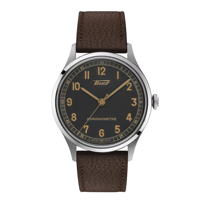 Rediscover the unique charm of the 1930s with the Tissot Heritage Gent Auto COSC 1938. Its anthracite sandblasted dial, highlighted by embossed Arabic numerals, was imagined as a nod to the simplicity and distinct design of the past. Protected by a 316L stainless steel casing and offering water resistance up to 50m, this timepiece is a durable partner for everyday life. The COSC-certified 2824-2 movement guarantees consistent accuracy, while the classic brown grained leather strap offers both comfort and style. Sized at 39mm, this watch is a refined choice for aficionados of craftsmanship and history.