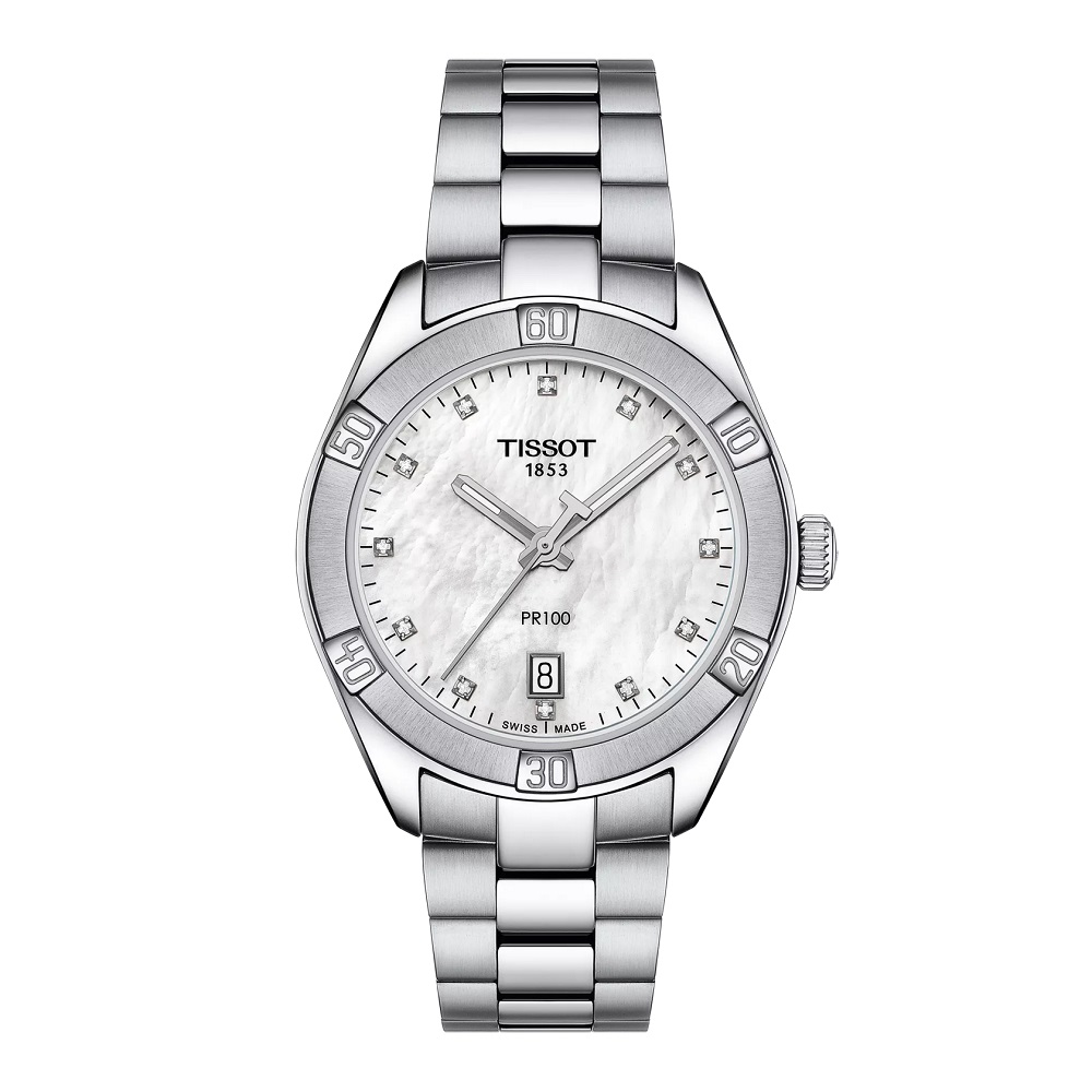The Tissot PR 100 is a classic watch destined to be worn often and for every occasion. This ladies PR 100 Sport Chic combines timeless design with sporty and feminine details for a bold and stylish design. With its beautiful mother of pearl dial, this stainless steel watch is the perfect timepiece for everyday wear and special occasions. Ideal for the modern woman today.