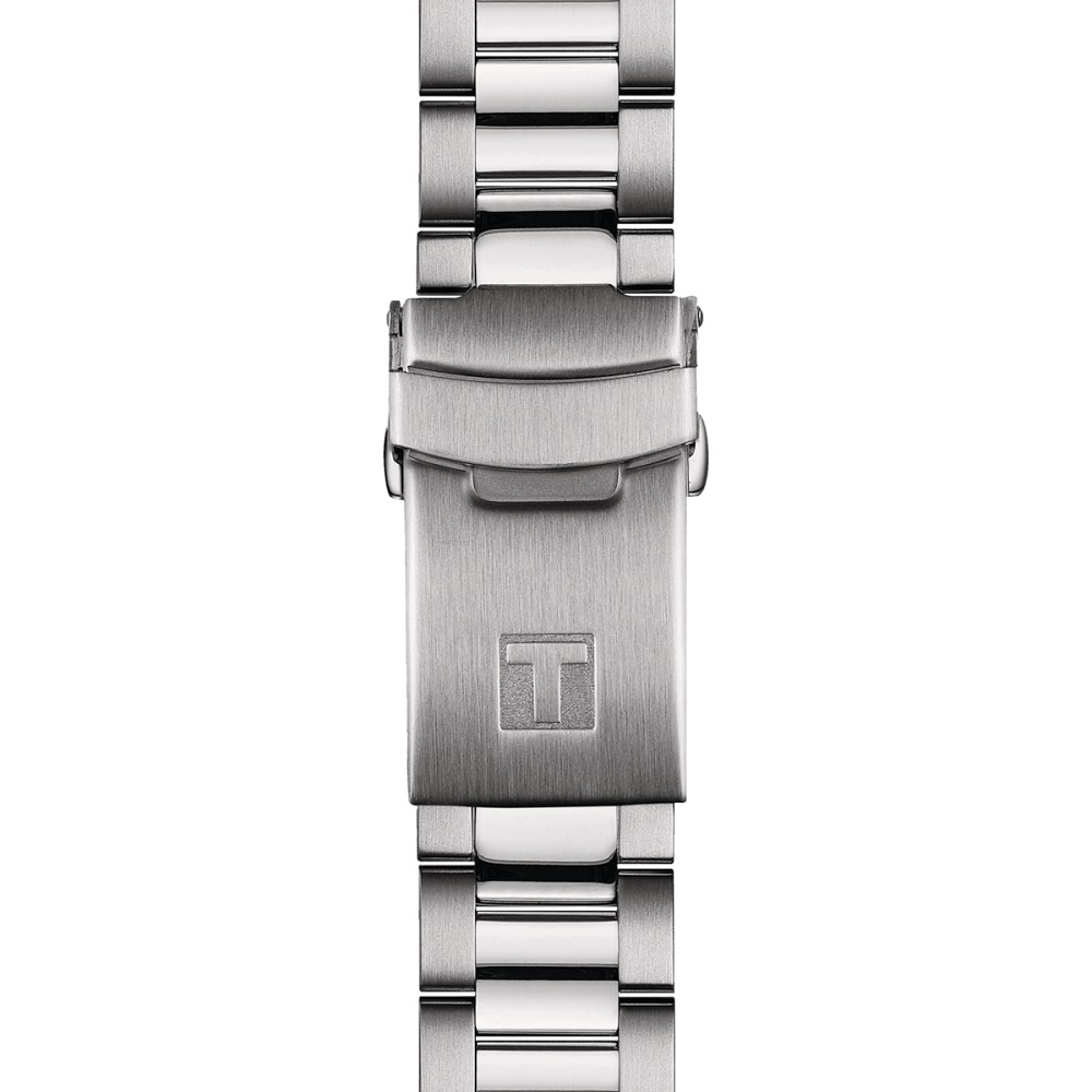 Discover the updated version of one of Tissot's main collections with the new Seastar 40mm Powermatic 80. This new edition has undergone a subtle transformation, incorporating a notch along the edges of the case, resulting in a more compact and sophisticated appearance. This automatic timepiece is the perfect watch for those in search of a sporty yet assertive accessory, offering water resistance up to 1000 feet (300 meters) and improved visibility in dim conditions thanks to the Super-LumiNova® coated hands and hour markers. Discover the unique aesthetic of this stainless steel version with its teal blue gradient dial and contrasting black bezel, following the collection's signature sporty yet bold appeal.