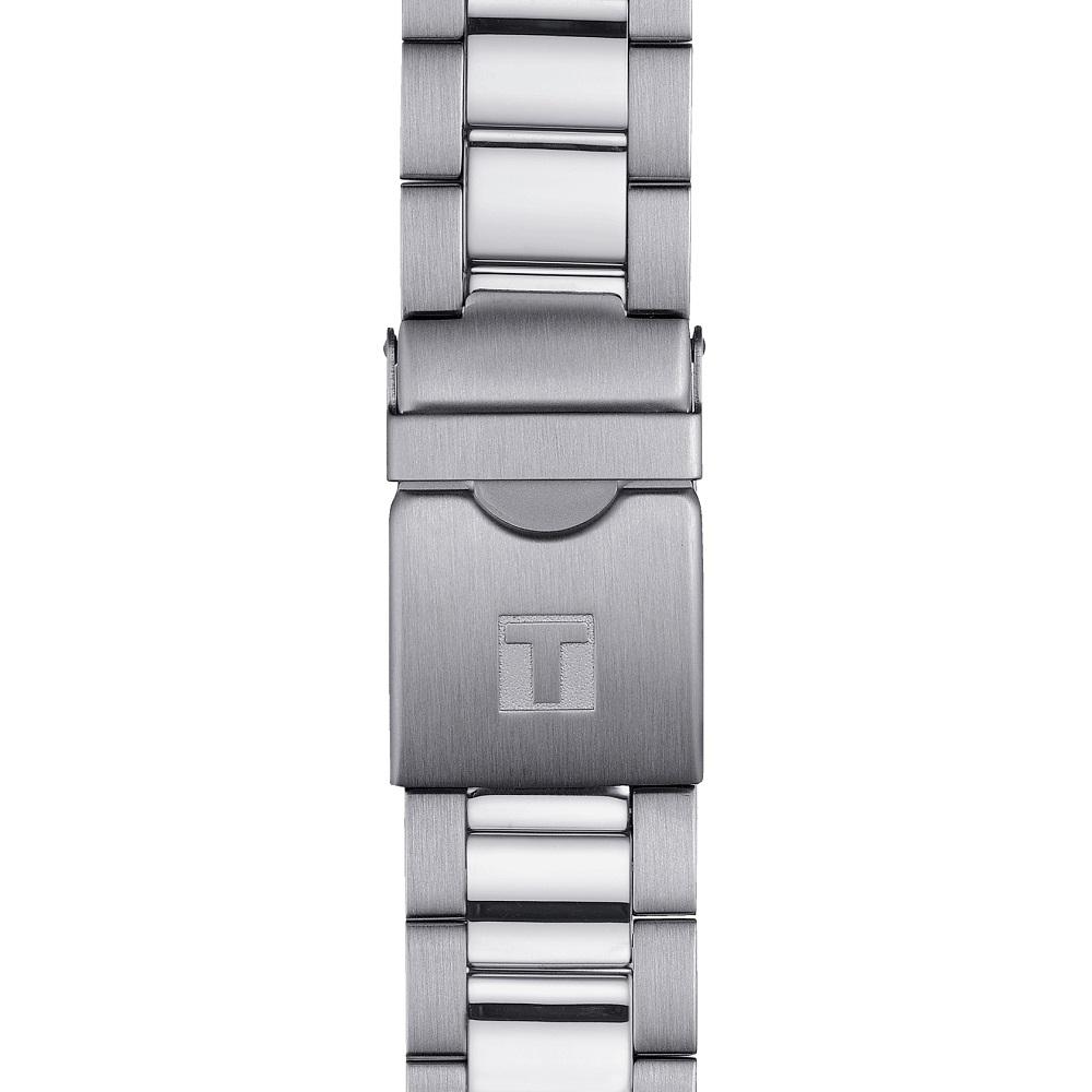 The Tissot Seastar 1000 merges style and performance without compromising either. The diving inspiration shapes both the appearance and the functionality of this watch. It maintains its performance to a pressure of 30 bar (300m/1'000ft), combining underwater sports and a preference for a sophisticated Swiss timepiece.The diving theme continues through elements such as a unidirectional bezel, a strap with a divers' safety buckle, plus luminescent hands and markings.